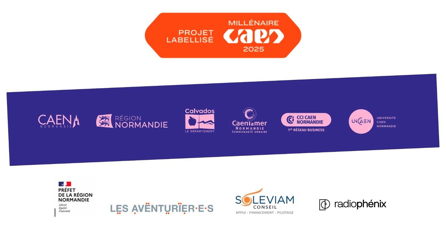 Soutiens – DRAC Normandie, Région Normandie, Département du Calvados, Ville de Caen, Communauté urbaine Caen la mer, Université Caen Normandie, CCI Caen Normandie